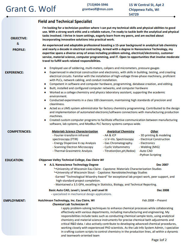 I am a dedicated and versatile technician with a strong background in electrical systems, laboratory operations, and a passion for innovation. My journey has been marked by a commitment to excellence and a relentless pursuit of technical knowledge. With an Associate of Science in Nanoscience Technology, I’ve delved into materials characterization, electrical construction, and electronics. My problem-solving skills and adaptability have allowed me to excel in various roles, from being a CEO and electrician at Wolf Electric & Home Design, Inc., to contributing as a Chemical Lab Technician and Chemical Service Coordinator at Hutchinson Technology, Inc.
